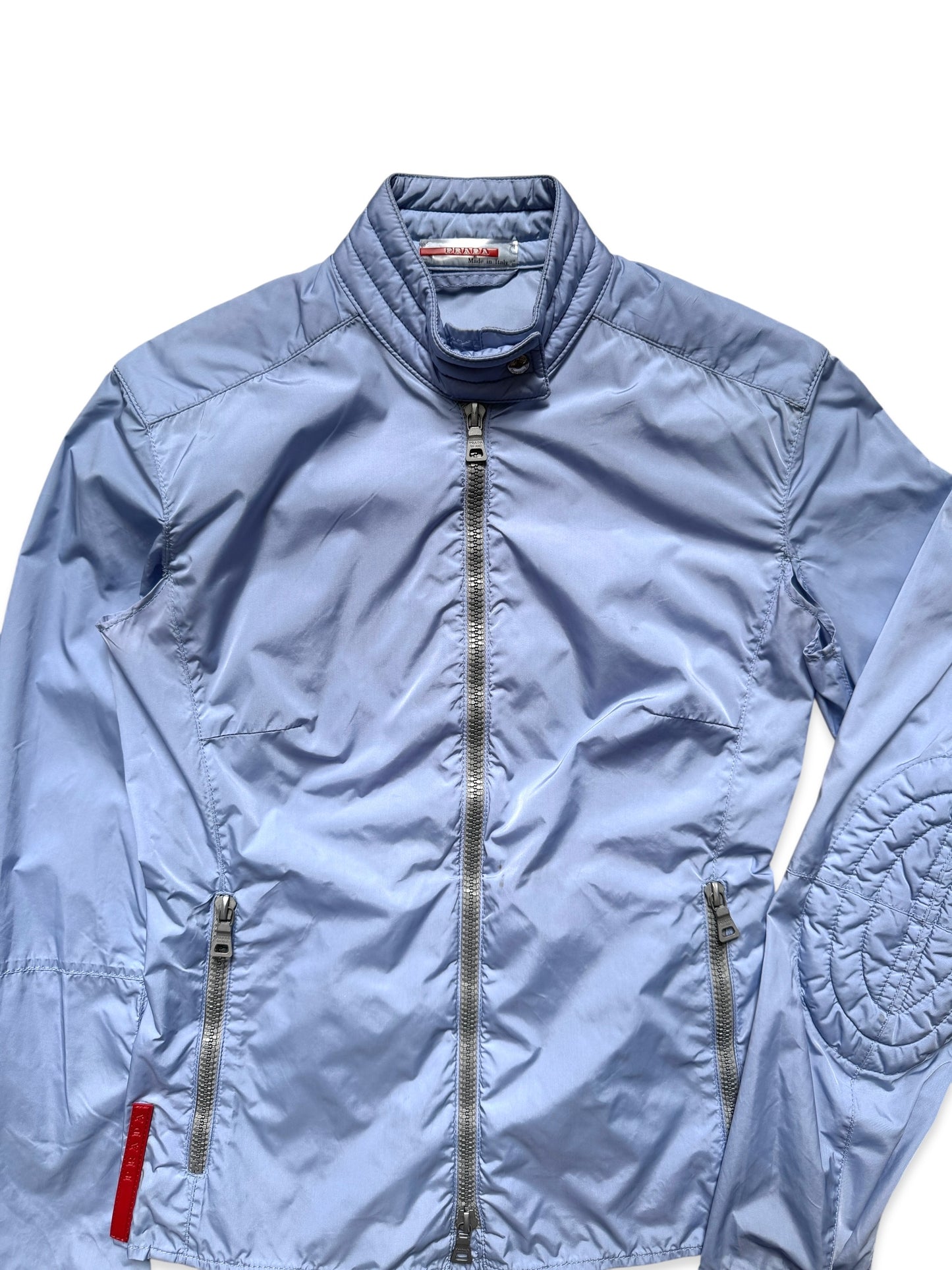 SS00' Prada Sport Baby Blue Nylon Padded Biker Jacket